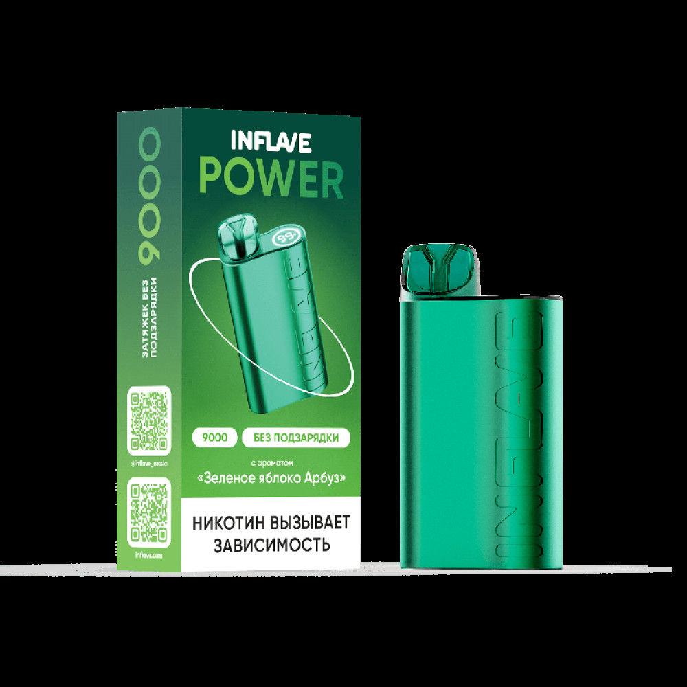 Электронная сигарета INFLAVE POWER 9000 затяжек Зеленое Яблоко Арбуз - купить в Ухте